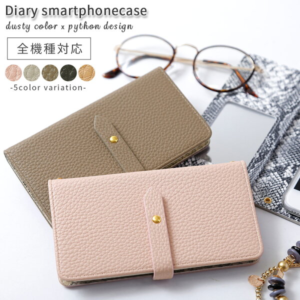 商品説明■外側と内側で異なる印象を楽しめるレザー調手帳型ケース外側はくすんだ色合いのダスティカラー、内側にはエキゾチックなパイソン柄を採用。